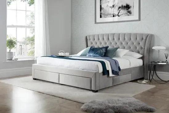 We’ve taken care of the variety of double bed styles, so it’s easy to find bed frames that match your specific needs. If you are solo sleepers who want more space than a standard single, opt for a standard double bed with generous dimensions. This will give you wiggle room to sleep comfortably without overwhelming most bedrooms. Is your challenge a small bedroom with limited storage? You need smart solutions that maximize your entire space. To address this, opt for double storage beds with lift mechanisms and drawers. This will provide ample storage space for clothes, linen, and personal items while maintaining the perfect fit for your room dimensions. Want to emphasize natural warmth in your bedroom? Choose double wooden beds with rich textures. You’ll create an even more cosy atmosphere if you match the frame materials with soft fabrics and warm colours. Problems with a cold, impersonal bedroom? Opt for velvet double beds with luxurious headboard designs. They will add comfort and style while creating an inviting space. If you prefer modern aesthetics, choose bed frames with sleek shapes that define your contemporary sleep style. For those looking for entertainment convenience, consider a double TV bed, which combines comfort with technology seamlessly.