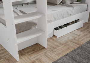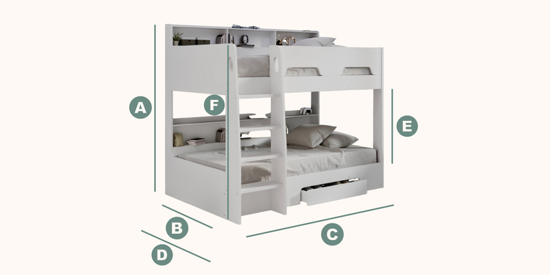 With built-in shelving for both bunks and a large pull-out drawer beneath the bottom bed, the Atlas makes it easy to keep bedrooms tidy and organised. Thoughtfully designed for safety, practicality, and everyday use, it’s the ultimate bunk bed for growing children.