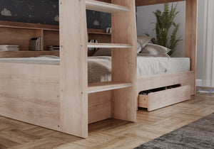 Available in White, Grey Oak, or Oak, this beautifully built storage bunk bed combines comfort and functionality in one elegant structure. Ideal for siblings or sleepovers, it offers plenty of sleeping and storage space without compromising on looks.