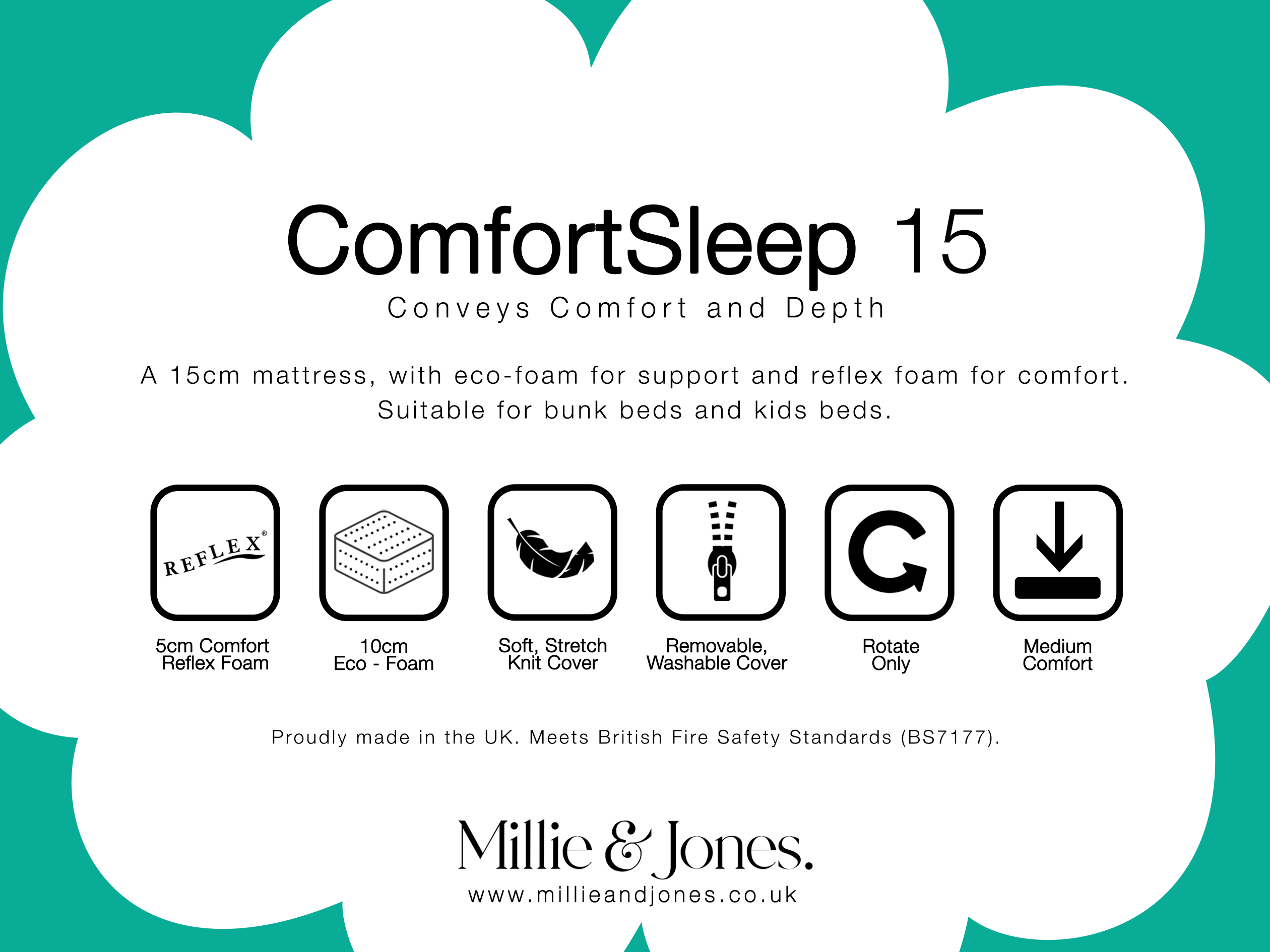 Its 5cm Comfort Reflex Foam top layer cradles the body to relieve pressure points, while the 10cm Eco Foam base provides reliable structure and support. The result? A peaceful, balanced night’s sleep that keeps children feeling refreshed and energised.