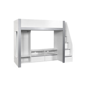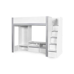 Make bedtime exciting with the Eclipse High Sleeper, a multi-functional bed designed to maximise storage, style, and space in your child’s room. Its elevated frame opens up room for a full-width wardrobe, versatile shelving, and even space for a TV or entertainment unit, blending modern design with everyday practicality.