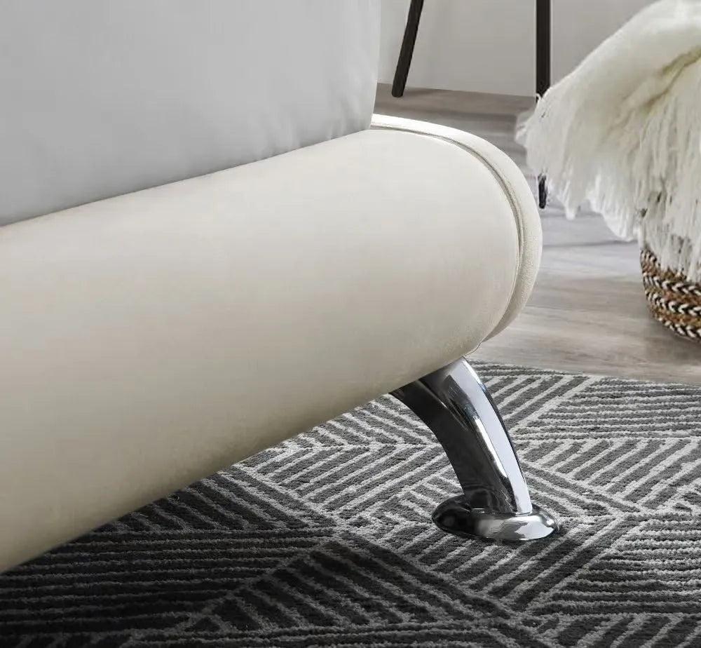 Chrome Plated Feet for a Touch of Glamour - Polished chrome feet add a striking contrast to the fabric frame, elevating the overall look with a modern, high end feel.