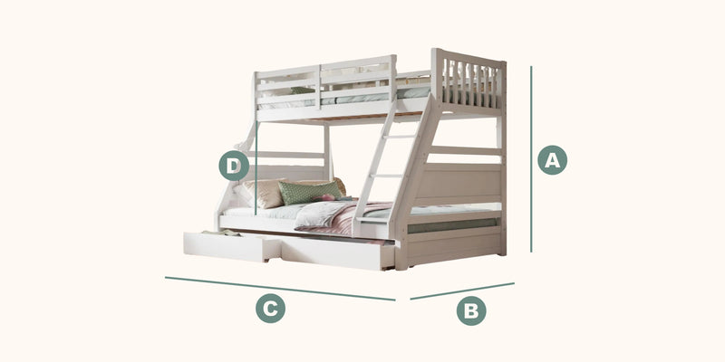 Integrated Storage Drawers - Two built-in storage drawers beneath the bottom bunk provide a convenient solution for storing bed linens, clothes, or toys, helping to keep the bedroom organised and clutter-free.