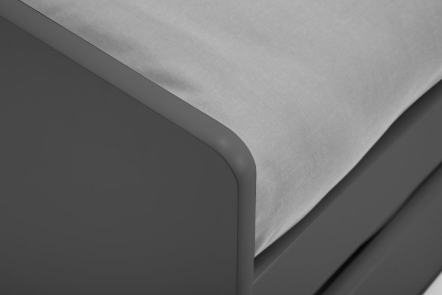 The Isla daybed boasts a sophisticated and sleek curved design, making it a stylish yet functional addition to any room. It is available in three stunning finish options: Surf White for a fresh and clean look, Dove Grey for a soft, neutral tone, or Anthracite for a bold, modern aesthetic.