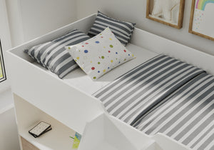 Smartly designed for everyday practicality, this versatile bed creates a complete sleep, study, and storage zone in one. It features a built-in double wardrobe, three roomy drawers, and a generous desk area that’s perfect for homework, crafting, or gaming. The integrated shelving keeps books and treasures close by, making it simple to stay organised.