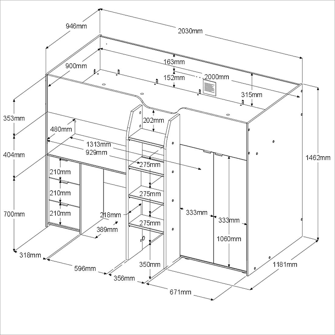 Perfect Hybrid Height - At 146cm tall, it bridges the gap between mid and high sleepers, offering maximum function with a lower, safer height.