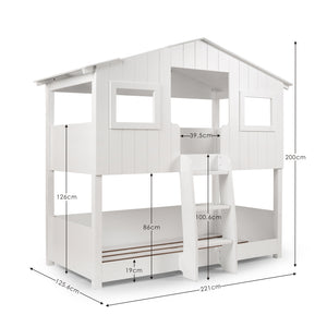Made from high-quality wood with a smooth, durable lacquered finish, this stunning bunk bed combines whimsical design with solid practicality. It comfortably sleeps two children, making it ideal for siblings or sleepovers, and fits standard UK single mattresses.