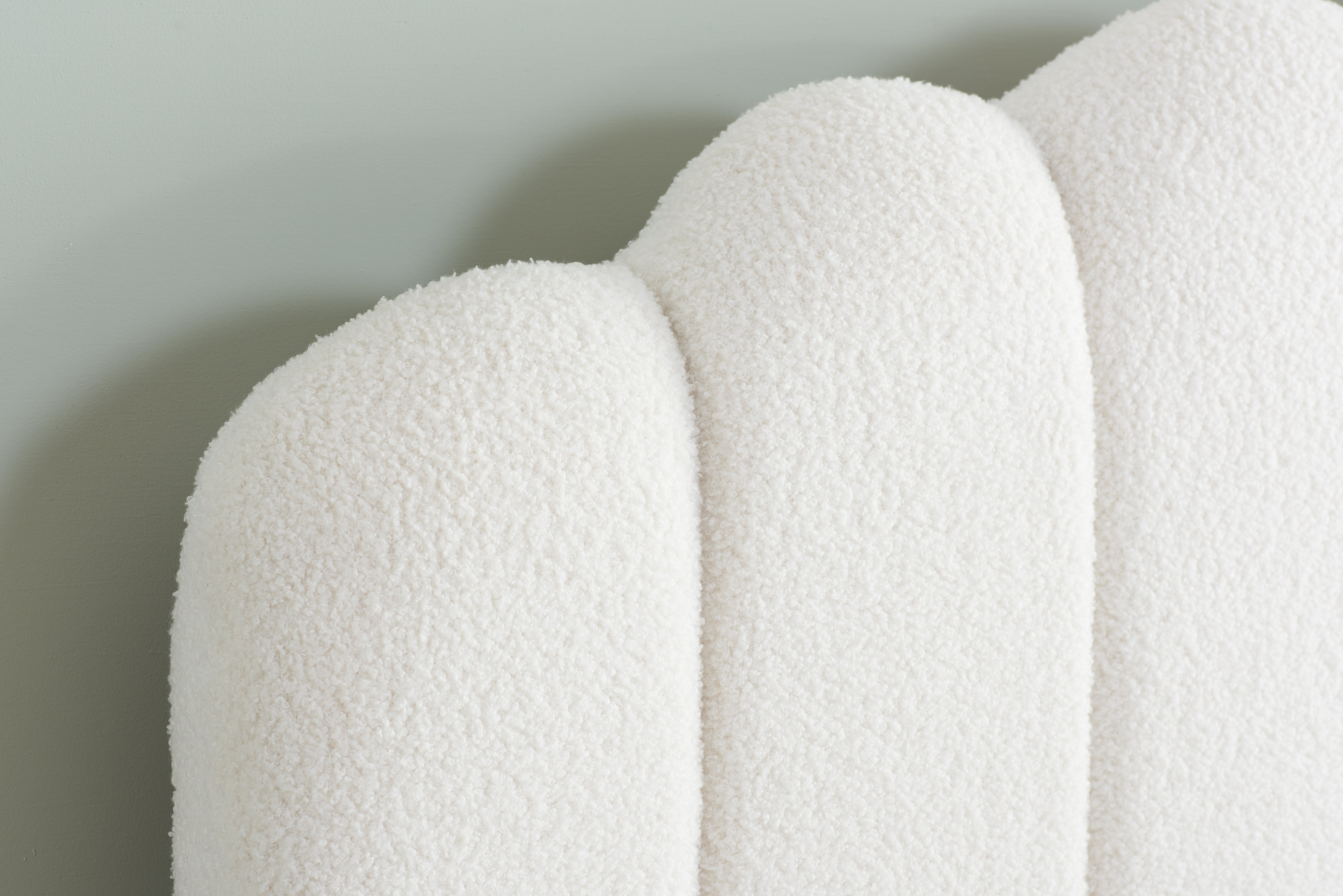 Featuring a beautifully sculpted fan shaped headboard, the Monaco blends timeless curves with a sleek, modern profile. Upholstered in ultra soft teddy bear style bouclé fabric, this bed invites relaxation and adds rich texture to any space, creating a true statement piece.