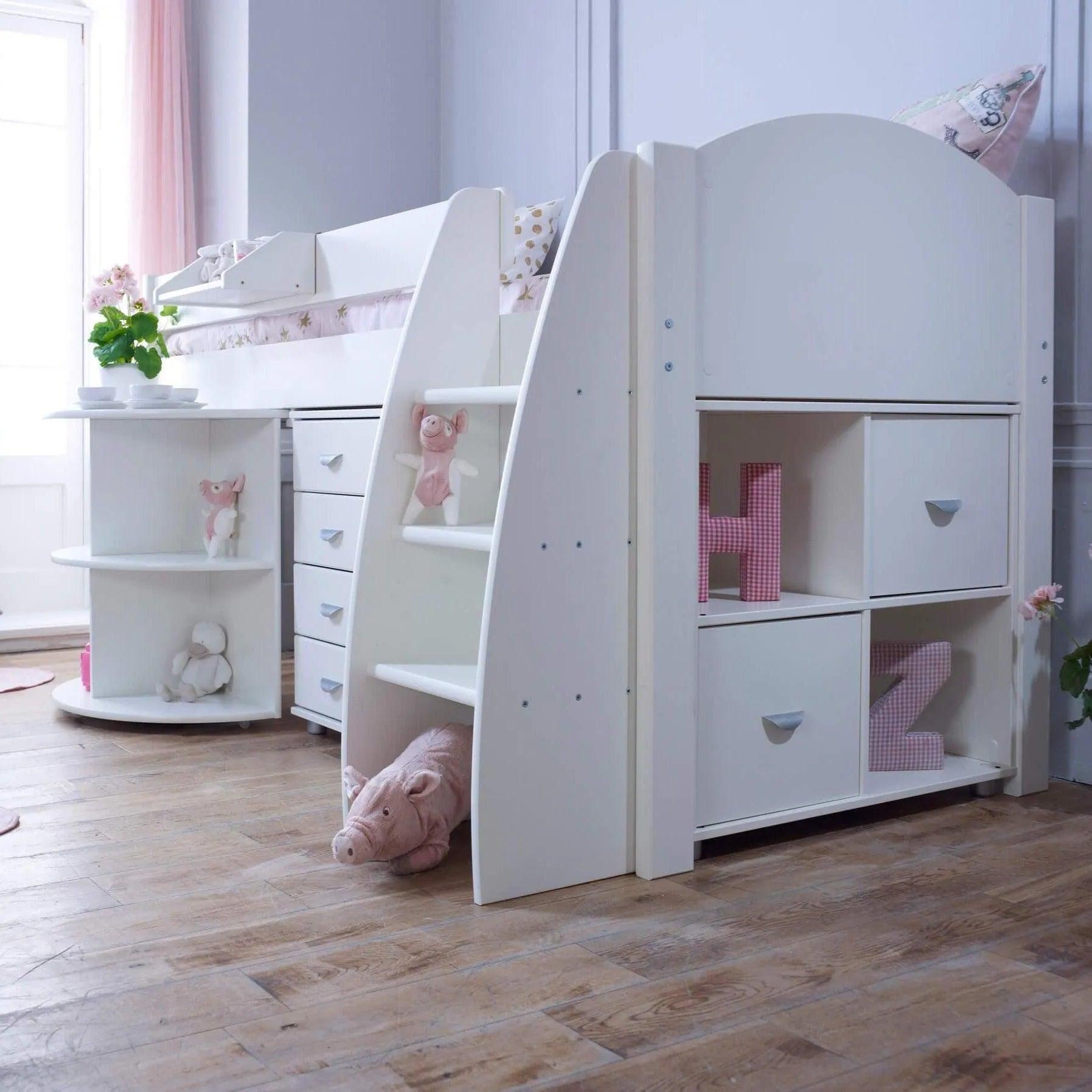 Introducing the Noah & Eli Mid Sleeper Bed, a stylish and practical solution for creating a tidy, organised, and space efficient bedroom for your child. Perfectly designed to maximise functionality, this mid sleeper packs in plenty of storage options, making it ideal for growing kids and parents seeking clever space saving solutions.