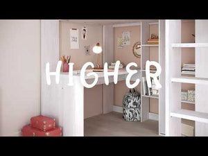 The Higher High Sleeper Bed is the ultimate solution for a tidy, organised, and stylish bedroom, perfect for growing kids and teens. Designed with functionality in mind, this bed is packed with storage options to make messy rooms a thing of the past. A full-length shelving unit provides ample space for books, toys, and decorative items, while a wide desk offers a dedicated area for studying, crafting, or gaming.