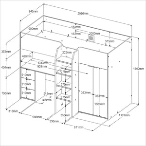 The Tom High Sleeper Loft Bed is the ultimate combination of style and functionality, making it a standout choice for any child's bedroom. Designed with practicality in mind, this high sleeper bed is packed with smart storage solutions, including a spacious wardrobe for clothes and accessories, three deep drawers to keep essentials neatly tucked away, and a wide desk that’s perfect for homework, crafting, or gaming. With so much organised storage, maintaining a tidy and clutter-free room has never been easier.