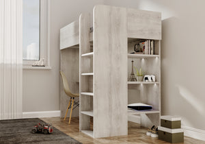 Give them the perfect place to sleep, study, and grow with the beautifully designed Sierra Loft High Sleeper. Finished in a soft grey oak effect that complements modern interiors, this clever all-in-one setup transforms wasted floor space into a productive and stylish zone.