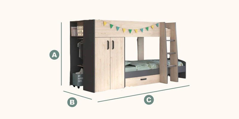 Perfect for older kids or teens with lots of belongings, the Stowe Bunk Bed offers a stylish and organised sleeping solution while saving floor space in any bedroom.