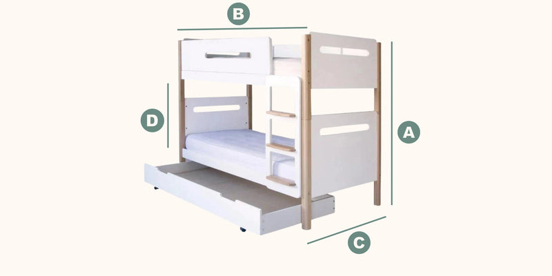 Mattress size for top and bottom bunk 90cm x 190cm - Trundle 76cm x 183cm x14cm