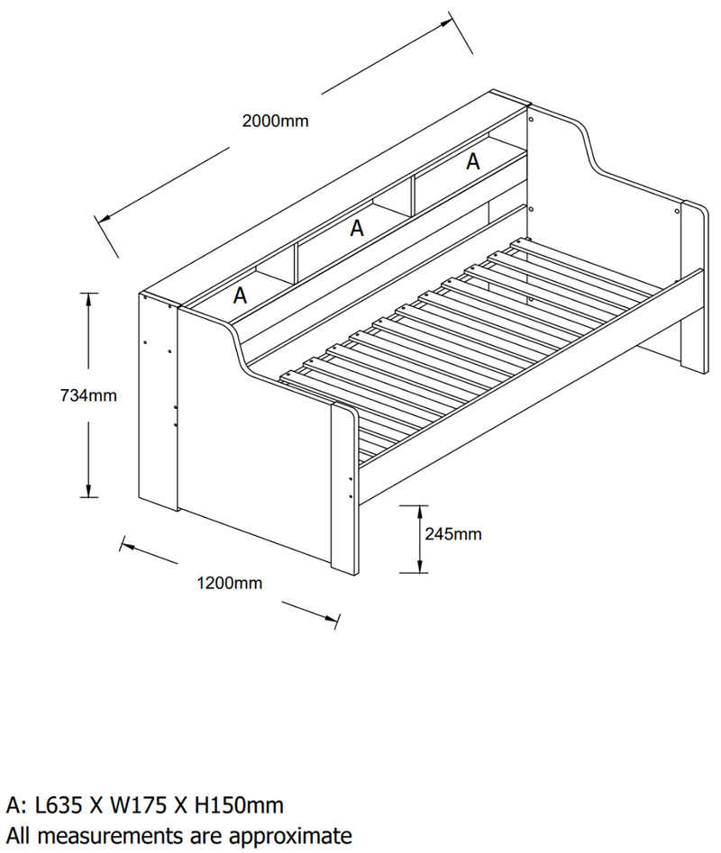 Built in Storage Shelves - Designed with three integrated shelving spaces, this bed offers a smart storage solution for books, toys, or bedside essentials, perfect for maximising space in smaller bedrooms.