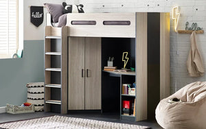 Engineered for optimal functionality, the Thunder High Sleeper is the ultimate choice for your child's bedroom. This versatile bed is designed to maximise space and organisation, featuring an angled wardrobe that offers generous storage for clothing and essentials. The built in shelving is perfect for keeping all their belongings in order, whether it's files, folders, shoes, or gaming gear.