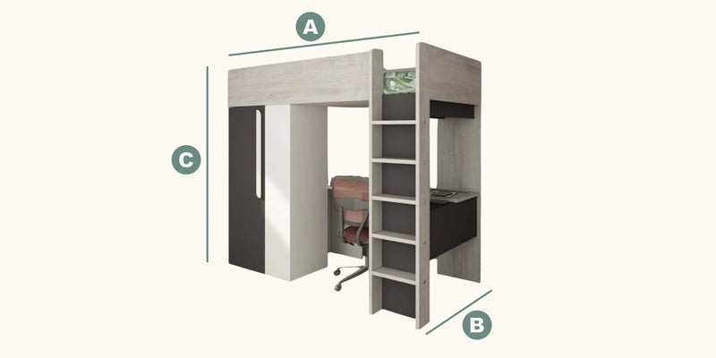 Designed with practicality in mind, it includes a spacious desk and a storage shelf underneath, perfect for studying or organising books. This high sleeper bed not only maximises bedroom space but also creates a stylish and functional environment for your child.